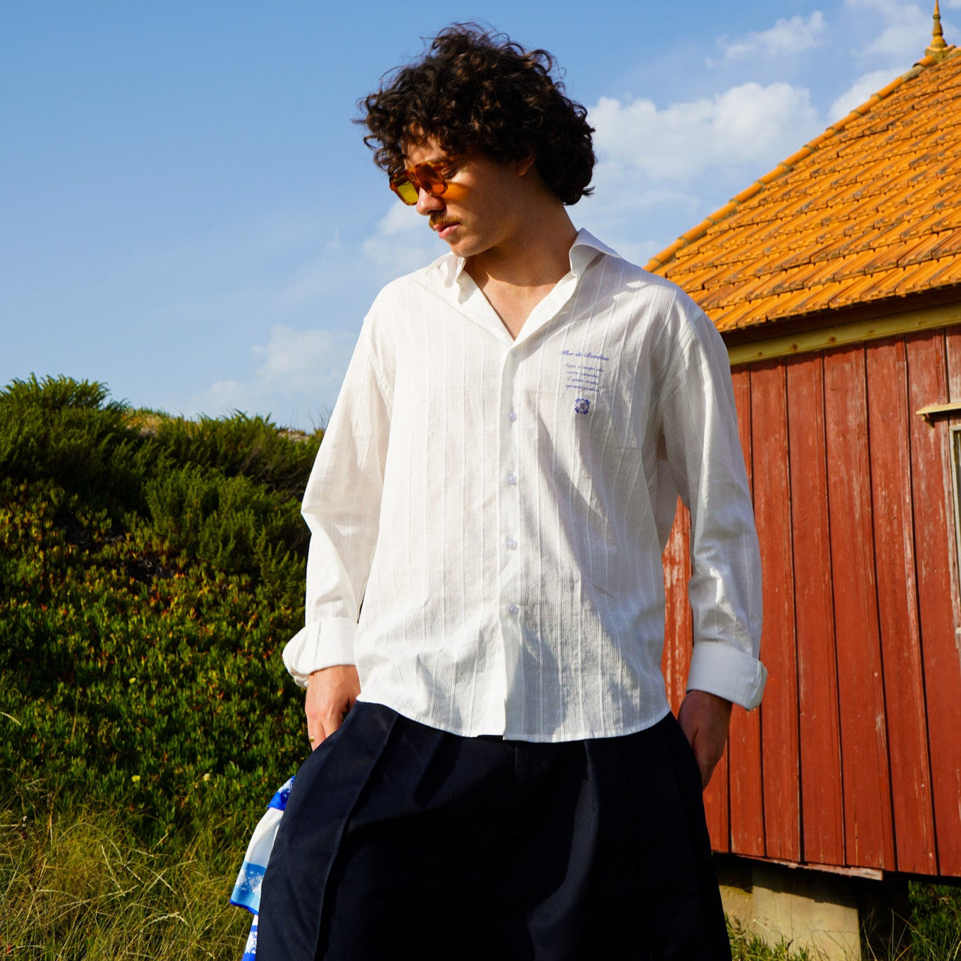 Écriture sérigraphié : “Aqui, o tempo não corre: caminha.E quem escuta, aprende a viver.”